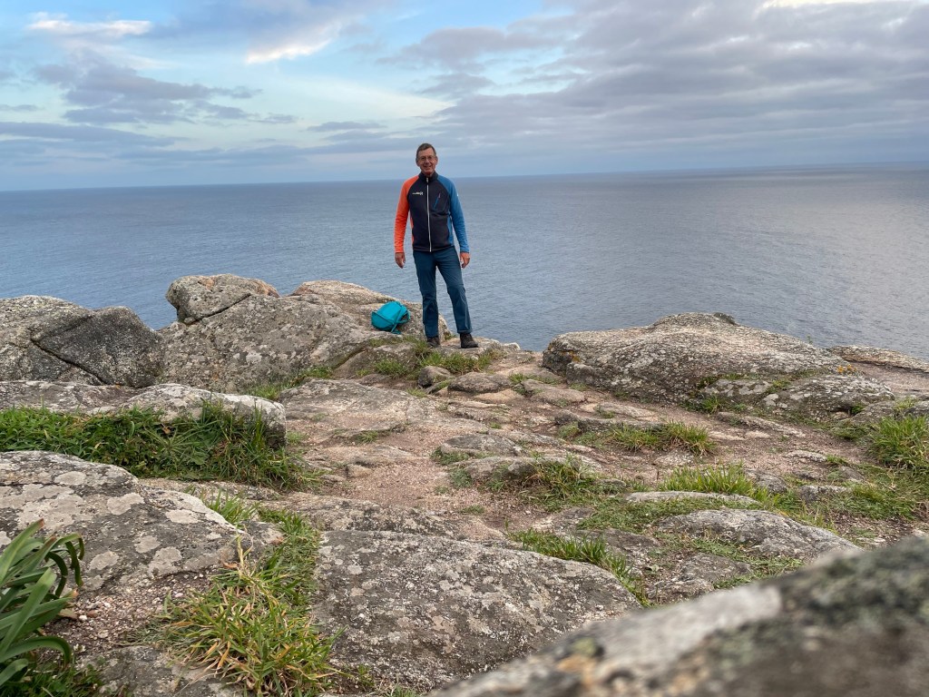 Heute ging es bei schönstem Sonnenschein und angenehmen Temperaturen weiter nach Westen. Nach Olveiroa, einer etwas größeren Siedlung auf dem Weg, waren erstaunlich viele Menschen auf dem Weg. Der Betrieb ist aber nicht vergleichbar mit dem auf dem Camino Frances. Eine abwechslungsreiche Strecke bei der das Meer am Ende zog. Vor Fisterre ist ein langer Sandstrand mit vielen Muscheln.
